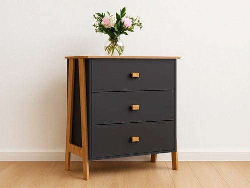 Комод БЕЙЛИ с 4 ящиками, Белый воск + антрацит