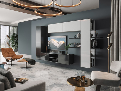 Набор мебели для жилой комнаты Альда №1, Черный глянец + Белый глянец