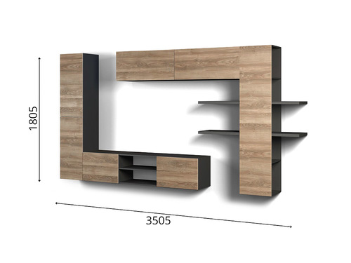 Гостиная СКАНДИНАВИЯ, Графит + Дуб Наварра 1