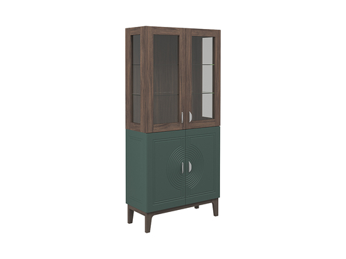 Шкаф с витриной Калипсо MH-044-01, Гикори Прадо тёмный + Комбу грин