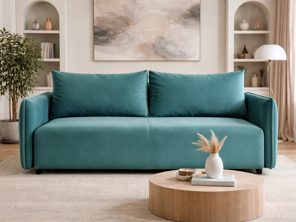 Европейский прямой диван для небольших помещений, дина его чуть больше 2 метров (2150 мм). Компактности достигается и за счет узких подлокотников, которые не занимают много места. В нем все продуманно до самых мелочей и не только во внешнем виде, но и конструкции. Диван понравится покупателям, которые с особым трепетом относятся к комфорту. Ведь в основе дивана жесткий и прочный каркас из массива хвойных пород деревьев. Для мягкости и комфорта в данной модели использован пружинных блок и высокоэластичный ППУ. В диване установлен механизм трансформации, который подходит для ежедневного сна. Под сиденьем у этого дивана еще просторная ниша для постельных принадлежностей.