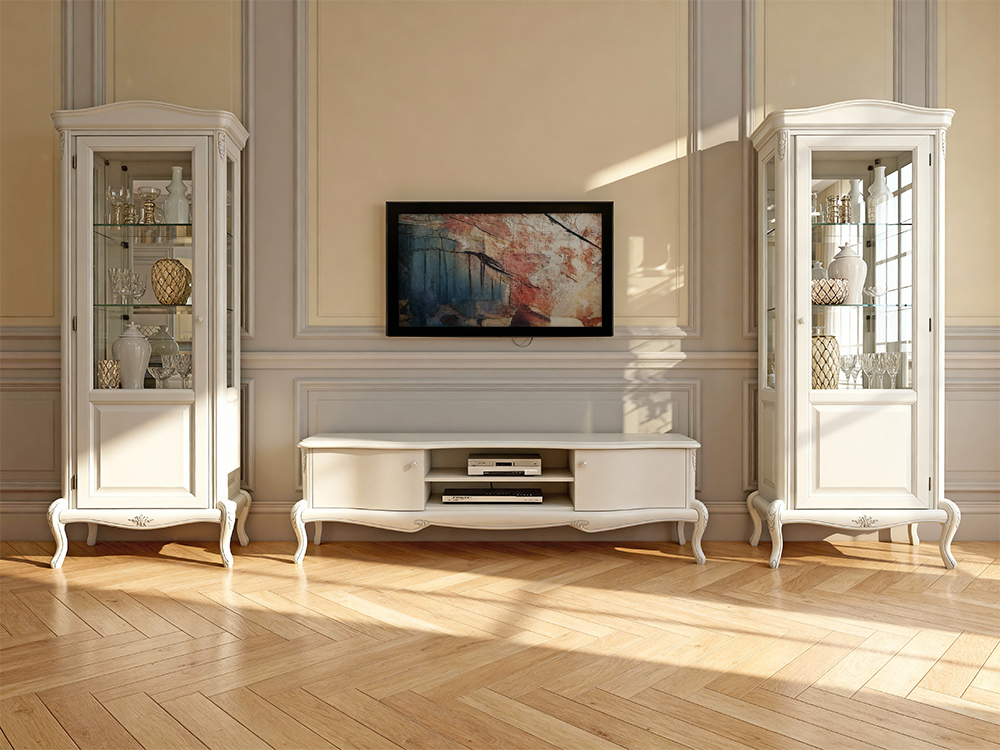 Коллекция выполнена с использованием массива дуба и бука, а так же шпона лиственных пород на лицевых поверхностях. Украшает изделия подобранная в тон к цвету мебели лицевая фурнитура, витиеватая резьба на выступающих элементах, объёмный вид накладок ящиков.