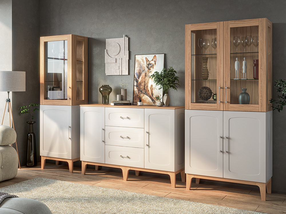 Погрузитесь в атмосферу утончённого комфорта с коллекцией мебели Танаро. Танаро – это не просто предметы интерьера, а философия гармонии, где элегантная строгость встречается с нежным домашним теплом. Изящные ножки из массива дерева придают композиции воздушность и визуально расширяют пространство, наполняя его светом. Инновационное матовое покрытие фасадов – это тактильное наслаждение, мягкая бархатистая поверхность, которая словно приглашает прикоснуться. Стеклянные витрины добавляют лёгкость и глубину, создавая эффект простора и ощущение порядка. Внимание к деталям отражено в характерной форме ножек, которые зеркально повторяют плавную линию фрезеровки фасадов. Этот продуманный акцент объединяет элементы коллекции в цельную эстетичную композицию, создавая интерьер, дышащий сдержанной элегантностью. Создайте пространство своей мечты, наполненное светом, теплом и эстетикой, которая вдохновляет каждый день.