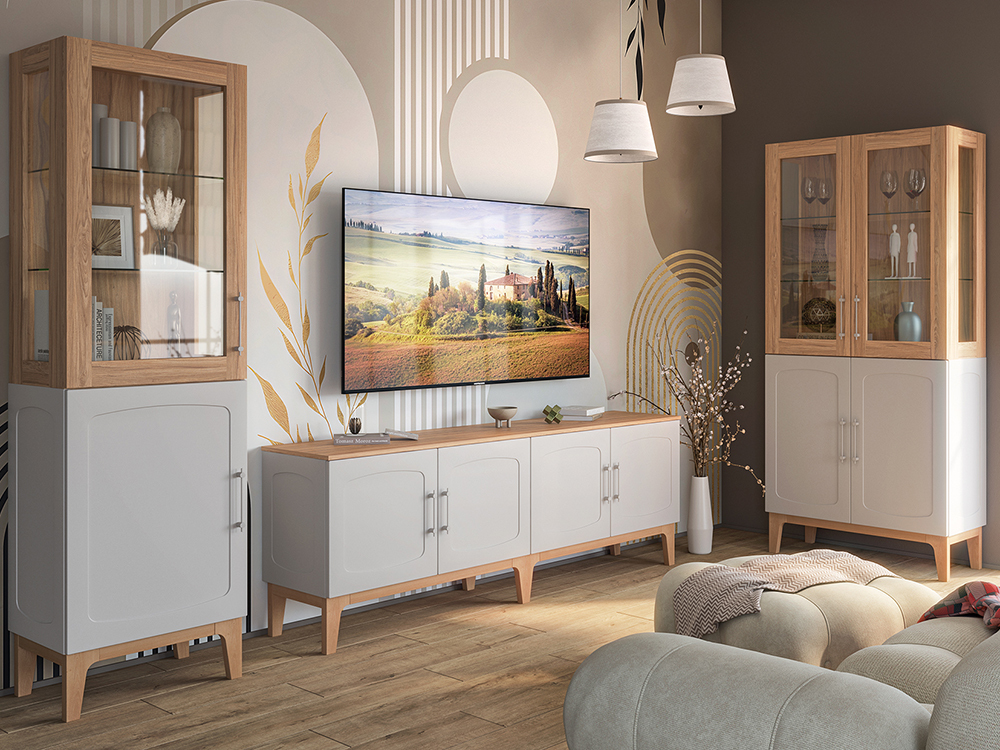 Погрузитесь в атмосферу утончённого комфорта с коллекцией мебели Танаро. Танаро – это не просто предметы интерьера, а философия гармонии, где элегантная строгость встречается с нежным домашним теплом. Изящные ножки из массива дерева придают композиции воздушность и визуально расширяют пространство, наполняя его светом. Инновационное матовое покрытие фасадов – это тактильное наслаждение, мягкая бархатистая поверхность, которая словно приглашает прикоснуться. Стеклянные витрины добавляют лёгкость и глубину, создавая эффект простора и ощущение порядка. Внимание к деталям отражено в характерной форме ножек, которые зеркально повторяют плавную линию фрезеровки фасадов. Этот продуманный акцент объединяет элементы коллекции в цельную эстетичную композицию, создавая интерьер, дышащий сдержанной элегантностью. Создайте пространство своей мечты, наполненное светом, теплом и эстетикой, которая вдохновляет каждый день.