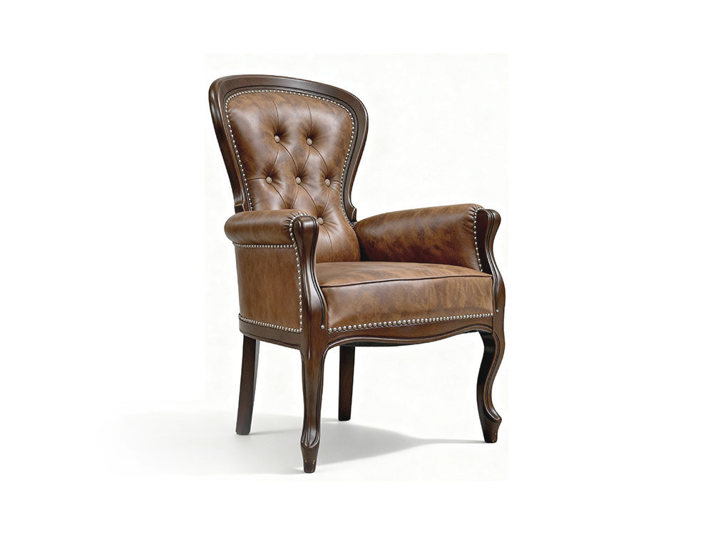 Уютное, мягкое кресло с роскошным дизайном станет достойным местом отдыха в гостиной, кабинете или у камина. На его спинку приятно облокотиться — она имеет продуманную форму, которая поддерживает спину и позволяет расслабиться. Объём и выразительность спинке придаёт декоративная утяжка пуговицами, а кант из мебельных гвоздей подчёркивает классический характер модели. Кресло выполнено по традиционным канонам классической мебели. Прочный каркас из натурального дерева и качественные обивочные материалы обеспечивают долгий срок службы, устойчивость и износостойкость.сть. Вариант обивки и цветовое исполнение деревянного каркаса Вы выбираете на свое усмотрение.