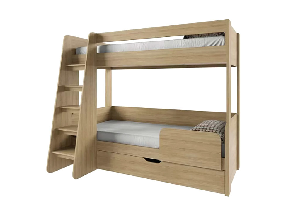 Двухъярусная кровать Дизель позволяет по-новому взглянуть на обустройство детской комнаты и отдых. При разработке этой модели белорусские дизайнеры учли возрастную физиологию и создали конструкцию со спальным местом шириной 135 см и длиной 208 см. В высоту она достигает 175 см, для безопасности подъема и спуска установлена устойчивая лестница с широкими ступенями. В производстве двухъярусной кровати Дизель использована ЛДСП класса экологичности Е1 и толщины 16 мм. Для безопасности вверху и внизу установлены защитные бортики. Внизу предусмотрен выдвижной ящик для спальных принадлежностей и белья. Для удобства его открывания сделаны специальные выемки. Визуально легкая отделка, неизбитый дизайн, простота в уходе – ключевые преимущества двухъярусной кровати Дизель. Ее торцы оклеены кромкой ПВХ, что предупреждает быстрый износ мебели и не позволяет содержащимся в материале клеевым составам испаряться. Модель такого размера и дизайна подходит для спален, оформленных в стиле лофт, минимализм, лофт и других современных стилей.