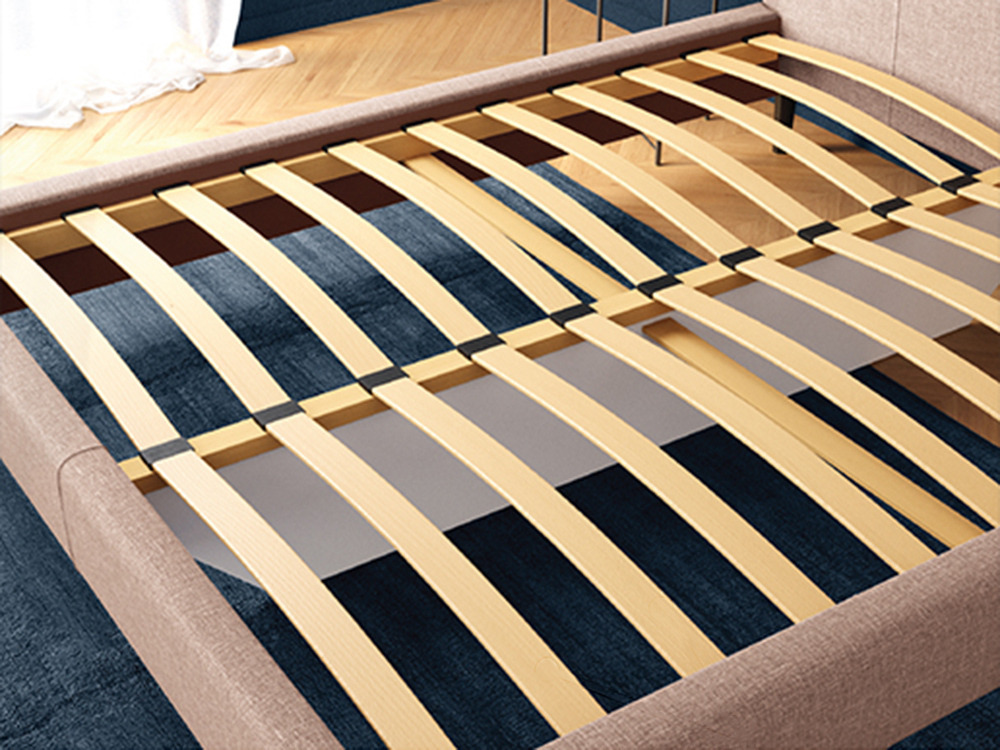 В конструкции кровати продумано все до мелочей для максимально комфортного сна и отдыха: большое спальное место и мягкое изголовье. В основании кровати расположены гибкие деревянные ламели, которые благодаря своим упругим свойствам служат амортизирующей основой для точечной подстройки матраса под ваше тело. Такое основание обеспечивает хорошую циркуляцию воздуха, что значительно продлевает срок службы матраса. Высокое мягкое изголовье оценят любители почитать в постели перед сном.