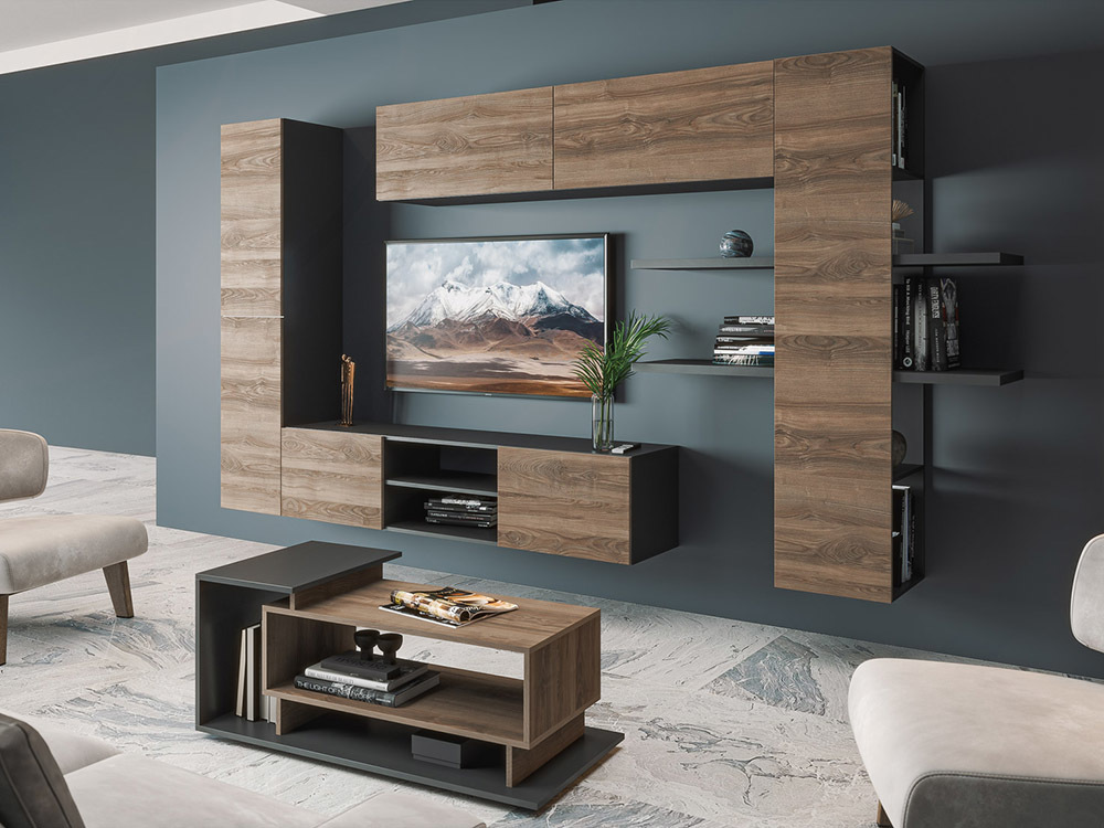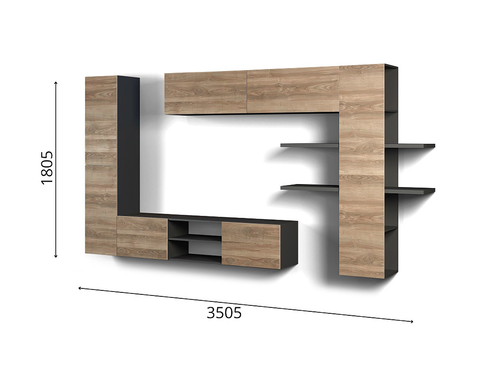 Набор мебели для жилой комнаты «Альда» Вариант комплектации №2 Цвет: Черный / Дуб велингтон