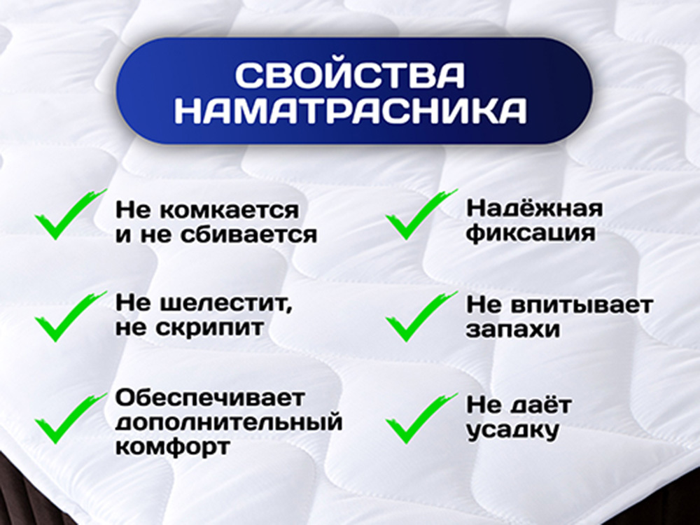 Наматрасник «Balance» — гармоничное дополнение к любому матрасу. Он выполнен из стёганного трикотажного полотна, с искусственным наполнителем «лебяжий пух» для придания мягкости. Наматрасник гипоаллергенен и лёгок в уходе. Это многофункциональное изделие поможет усилить уровень комфорта во время сна. Он создаст прекрасную теплоизоляцию, поэтому в холодные ночи одновременное использование матраса, наматрасника и тёплого одеяла гораздо эффективнее. Кроме того, наматрасник защищает матрас от попадания на него загрязнений, а также предохраняет его от преждевременного изнашивания.