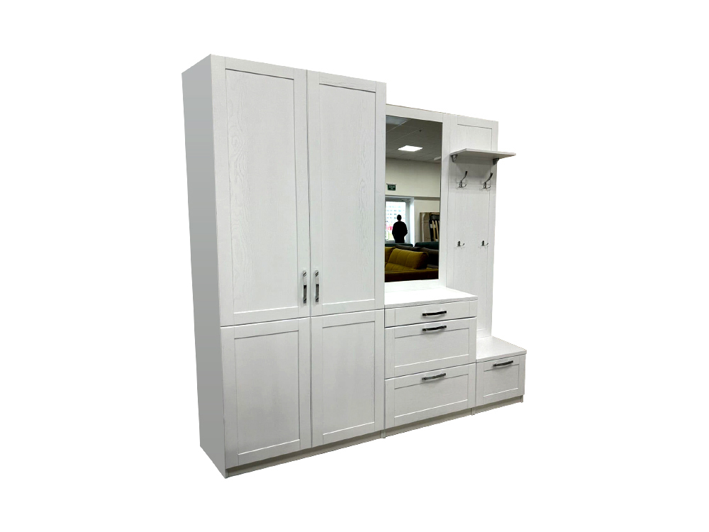 Прихожая «Карина» — это стильное и функциональное решение для организации пространства входной зоны, сочетающее в себе качество материалов, продуманную конструкцию и современный дизайн. В составе: шкаф со штангами и полками, тумба для обуви, ящик для мелочей, ящик для обувных принадлежностей, зеркало, вешалки и полка для головных уборов.